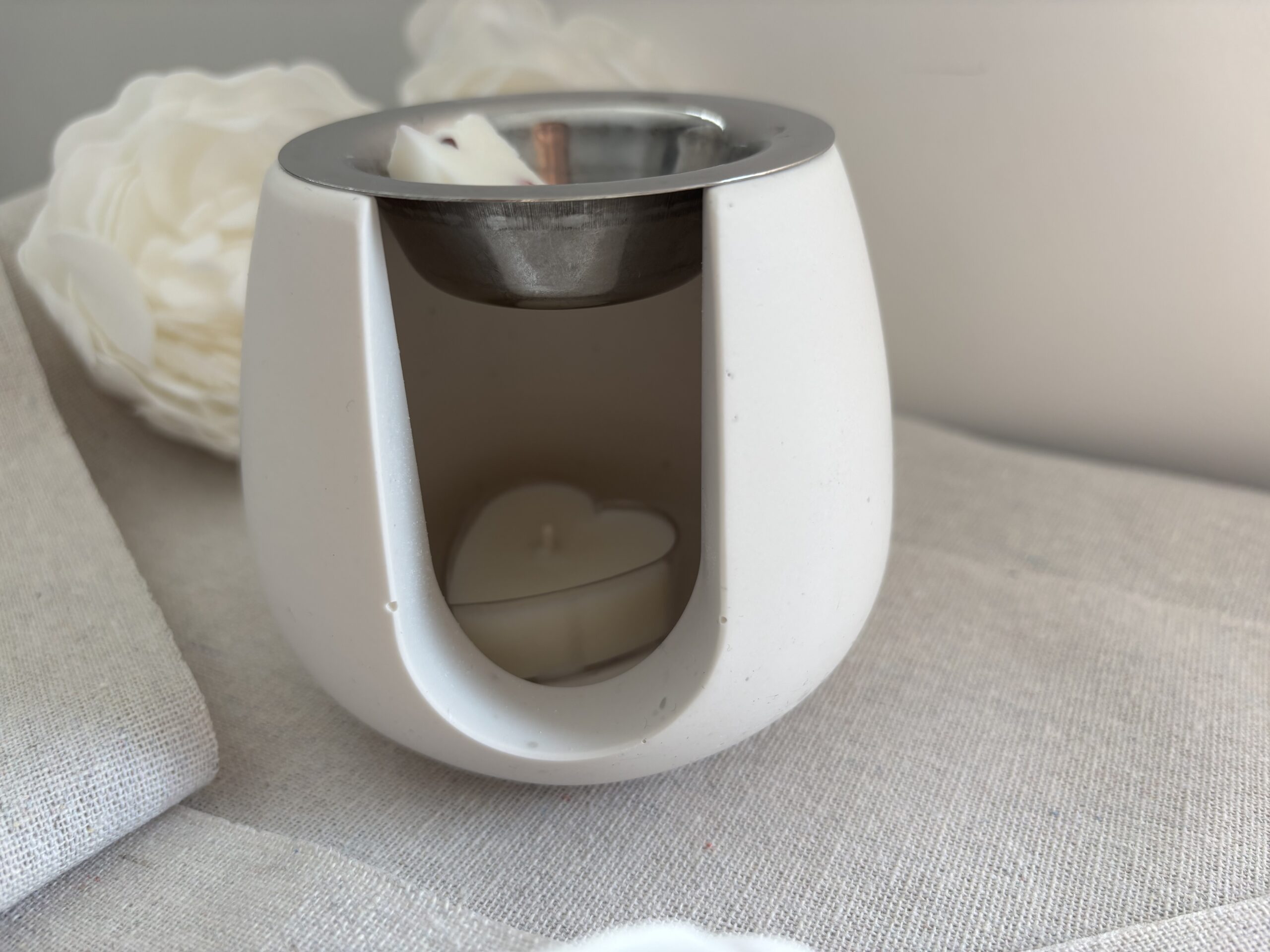 Déposer votre fondant liquide ou en morceaux dans la coupelle en inox du brûle parfum et ensuite allumer une bougie chauffe plat dans l’emplacement inférieur du brûleur. Laisser fondre afin de libérer le parfum.